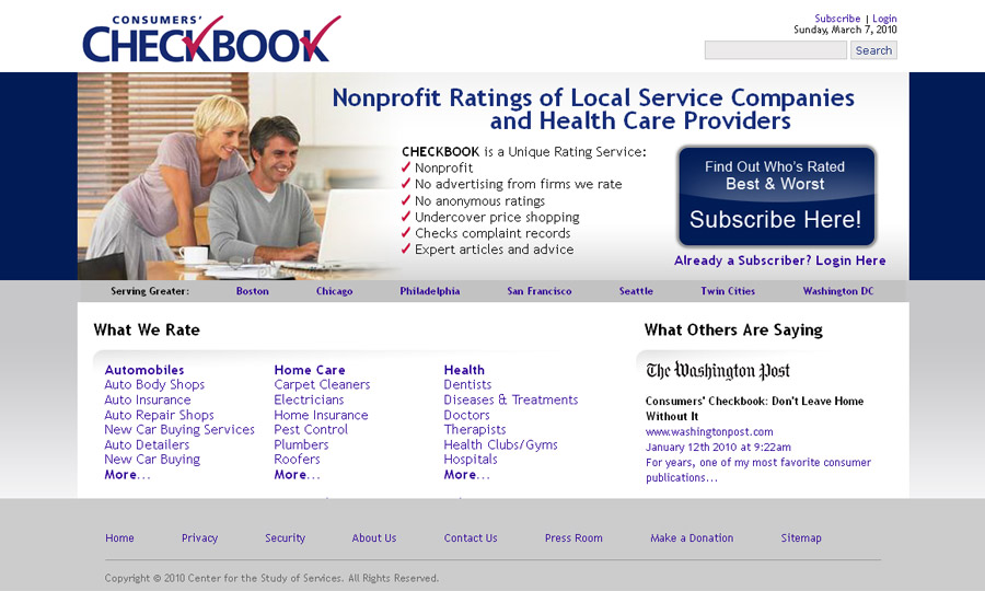 Website design for America's leading provider of local service and health provider ratings, Checkbook.org
