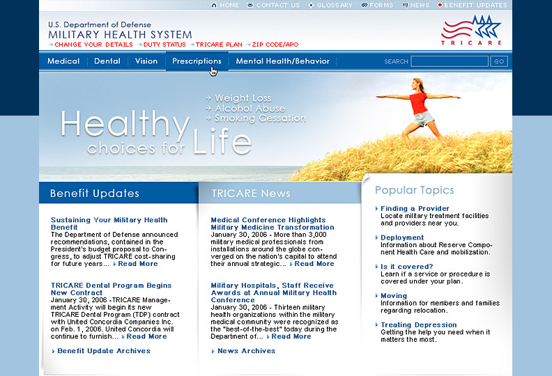 Website design for the Health Affairs Administration of the Dept. of Defense.