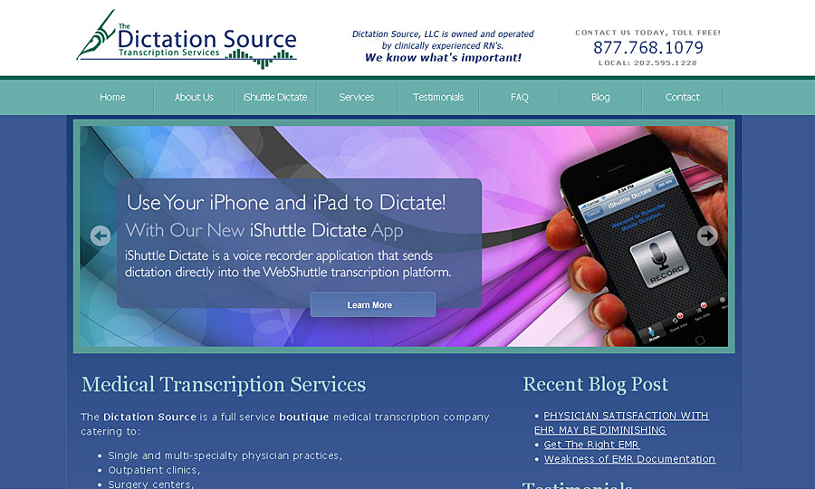 Logo & Website design & development for a leading national medical transcription company.